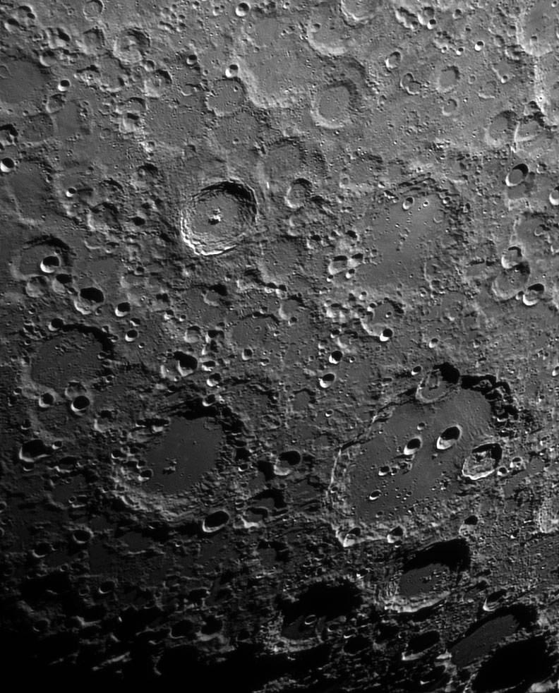 De Claviuskrater is een van de grootste en meest herkenbare kraters op de maan. Gelegen aan de rand van de zichtbare kant, heeft deze indrukwekkende krater een diameter van ongeveer 225 kilometer. Clavius is niet alleen opmerkelijk vanwege zijn grootte, maar ook vanwege de vele kleinere kraters die zich binnen en nabij de grenzen bevinden.