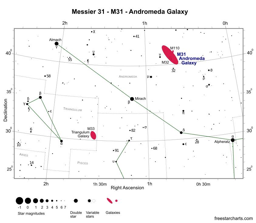 Met een schijnbare magnitude van ongeveer 3,44 is de Andromedanevel met het blote oog zichtbaar vanuit de Aarde, vooral op heldere, donkere nachten. Het stelsel bevat duizenden sterren en een groot aantal sterrenclusters. Wetenschappers schatten dat de Andromedanevel meer dan 1 triljoen sterren bevat.